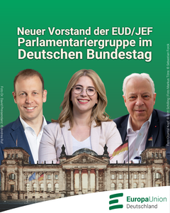 Am 12. November konstituierte sich in Berlin die Parlamentariergruppe der überparteilichen Europa-Union Deutschland (EUD) im 21. Deutschen Bundestag. Die Mitglieder wählten einen neuen Vorstand, der die erfolgreiche Arbeit der letzten Jahre fortführen wird. Neue Sprecherin der Gruppe ist Chantal Kopf MdB (Fraktion Bündnis 90/Die Grünen). Ihre Stellvertreter sind Dr. David Preisendanz MdB (CDU/CSU-Fraktion) und Markus Töns MdB (SPD-Fraktion).