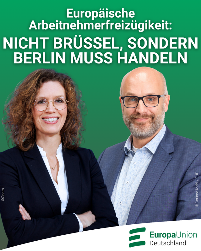 Die überparteiliche Europa-Union Deutschland (EUD) warnt vor einer nationalistisch aufgeladenen Debatte über angeblichen Missbrauch der europäischen Arbeitnehmerfreizügigkeit. Statt die Freizügigkeit infrage zu stellen, müsse die Bundesregierung prüfen, ob in Deutschland die richtigen Anreize für Arbeit und Integration gesetzt werden.