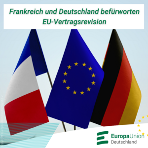 In einem am Wochenende veröffentlichten Dokument haben sich beide Länder darauf geeinigt, die Sackgasse, in der sich die Europäische Union befindet, zu überwinden. Die Europäischen Föderalisten begrüßen die gemeinsame Erklärung Frankreichs und Deutschlands vom 22. Januar und unterstreichen das Engagement der beiden Länder für eine Reform der europäischen Institutionen, einschließlich der Möglichkeit einer Vertragsrevision, um die Europäische Union als geopolitischen Akteur zu stärken und sie auf künftige Erweiterungen vorzubereiten.